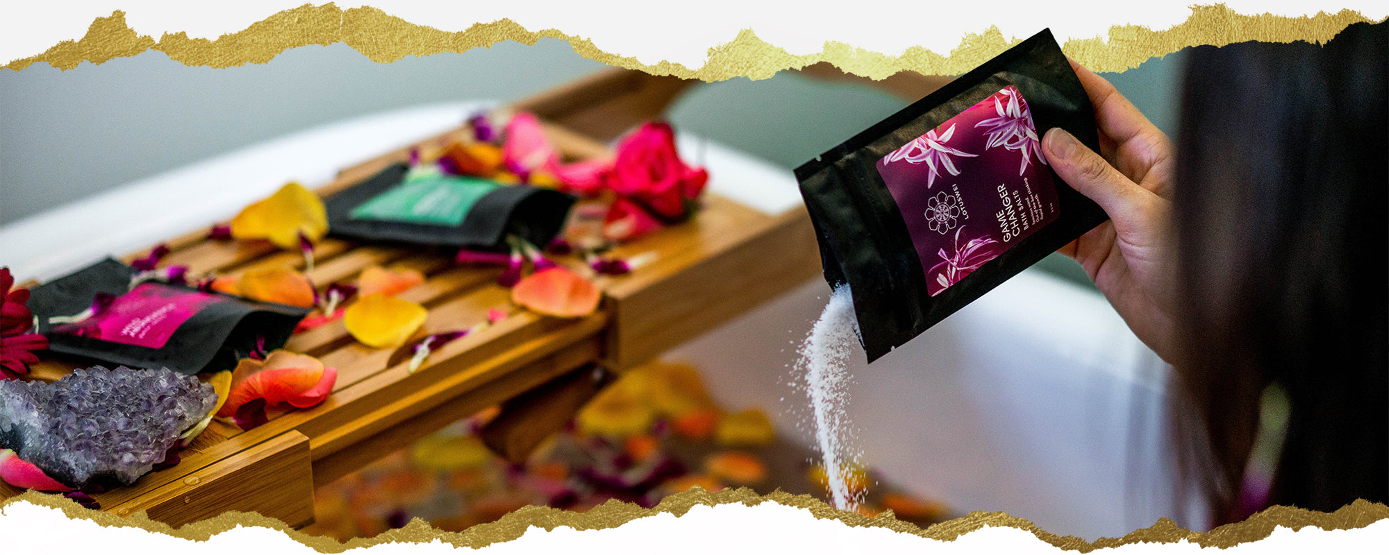 LUXURIOUS SINGLE-USE DETOXIFYING SEA SALTS INFUSED WITH FLOWER ELIXIRS & AROMATHERAPY.